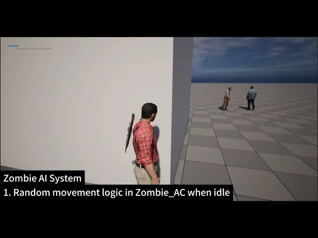 Idle roaming via Zombie_AC (AIController) + NavMesh.
